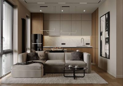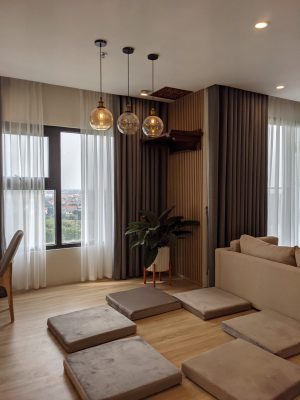 Với tinh thần gần gũi với thiên nhiên, tông màu trắng chủ đạo giúp căn hộ nhỏ thêm phần thoáng đãng và rộng rãi. Màu trắng có giá trị làm tăng sáng cho căn hộ, mang lại cảm giác rộng rãi, lịch sự và cho phép những gam màu khác cùng đồ nội thất trở nên nổi bật, thu hút hơn. Trong khi đó, màu xanh olive nhẹ nhàng và on-trend được chọn để nhấn nhá cho không gian thêm phần sinh động và thanh bình.