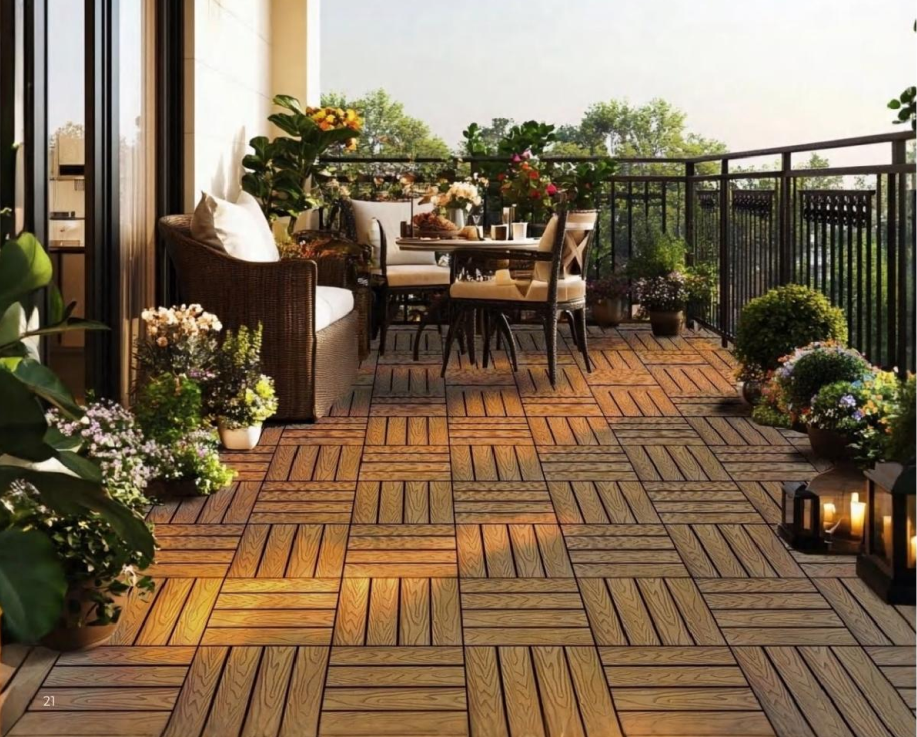 Sàn nhựa ngoài trời WPC Deck Tiles – Fence với kích thước 300x300x20mm và 300x600x20mm là giải pháp lát sàn hiện đại, bền đẹp và an toàn cho các không gian ngoài trời. Được sản xuất từ vật liệu gỗ nhựa WPC cao cấp, sản phẩm sở hữu khả năng chống nước, chống trơn trượt, hạn chế cong vênh và chịu được tác động khắc nghiệt của thời tiết như nắng nóng, mưa ẩm hay tia UV. Với thiết kế dạng deck tiles thông minh, việc lắp đặt trở nên nhanh chóng, tiện lợi mà không cần dùng đinh vít phức tạp. Bề mặt vân gỗ chân thật, màu sắc sang trọng giúp nâng tầm thẩm mỹ cho sân vườn, ban công, hồ bơi, lối đi hay khuôn viên nghỉ dưỡng. Đây là lựa chọn lý tưởng cho những ai muốn tạo nên không gian ngoài trời tự nhiên, bền bỉ và tinh tế.